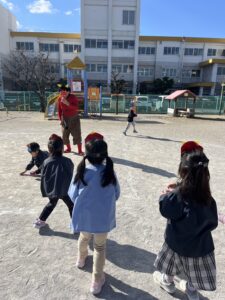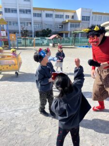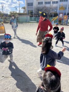 2月3日の節分の日に園庭で豆まきをおこないました。