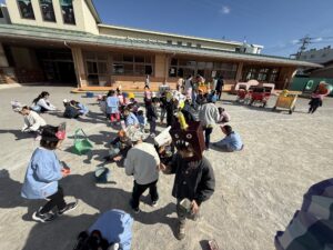 丁寧に豆を拾って園庭をきれいにしてくれました。