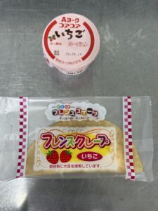 午後おやつ お茶・(乳児)いちごヨーグルト (幼児)フレンズいちごクレープ