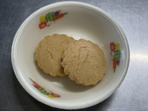 おやつは、きなこがたっぷり入ったちんすこう。ざくざくとした食感が特徴のクッキーです。