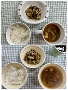 この日の給食のおかずは、栄養満点ひじきの煮物に、具だくさんのけんちん汁でした😉